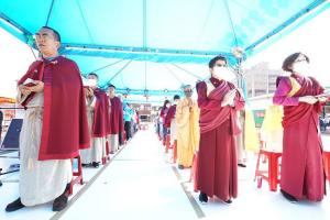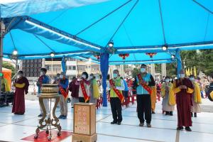 法會圓滿後將功德迴向給法界一切眾生,祝禱在疫情蔓延的當下,大家都能身心安樂,息災免難,災去福臨,太魯閣火車事故往生者即升極樂淨土,受傷者早日康復痊癒,驚嚇者遠離恐慌,身心安樂。