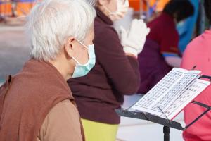 6月18日世界佛教正心會在中正紀念堂「行動佛殿 佛光遍照 環島祈福 公益關懷」活動現場舉辦「健康慶端午」和300多位來自台北各地的寒士、單親媽媽、獨居老人,一起用誦經祈福來慶祝端午佳節。