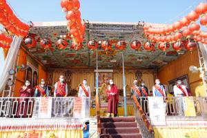 方信淵議員表示這一台17噸卡車改造的行動佛殿真的很雄偉,三寶佛也非常莊嚴,感謝該會到達梓官祈福。代天府主委林存賢代表代天府歡迎該會,今天剛好是註生娘娘聖誕,也祝福信眾身體健康國泰民安風調雨順。議員黃秋媖秘書戴證家代表議員前來祈福,祝福法會圓滿成功。