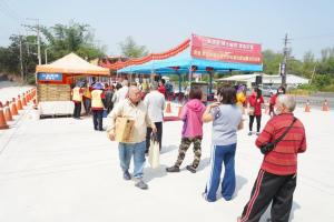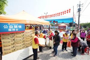 李秋利區長表示:該會行動佛殿環島祈福超過1000多個日子,到過130幾個地方,今天能來到田寮祈福並帶來愛心物資關懷地方,非常感謝,特別代表公所致贈感謝狀給該會。葉宏信市政顧問代表市長前來致意,表示該會成立21年來皆以入世的方式走入人群,關懷大眾,希望藉由環島祈福讓天降甘霖,大家平安吉祥。田寮區公所更來了多位同仁宣導:國民年金是人們一輩子的守護,按時繳交終身保障不會少。