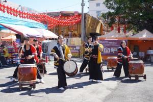 週六早由旭太鼓、正心合唱團、王玉玲、莊活志及海峽兩岸國標舞冠軍國小生郭凱超帶來精采演出,隨後仁武區區長吳茂樹帶領同仁至佛殿宣導防疫措施,並與天后宮主委吳政服、吳利成議員陳主任、江瑞鴻議員沈助理一同祈福。