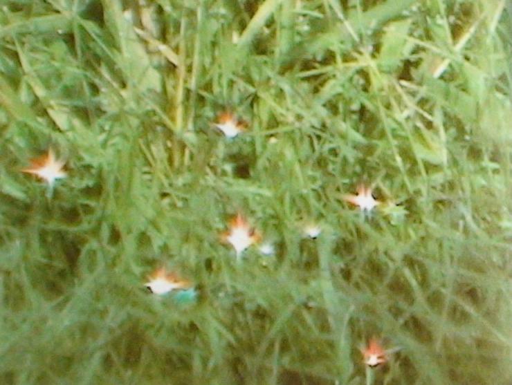 l 我看到「四寶吉祥草」,一種特殊的花,在舉行聖義浴佛法會儀式前面的地上,長出了特殊的圖案,形成了一個圓美的圓形。法會之前,地是平的,法會以後,平地稍微升起了,形成了一個小丘,花兒就只在這裡長出來,園內其他地方都沒有這花。